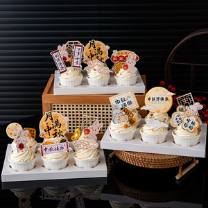 2025中秋节蛋糕装饰新中式月满中秋人月团圆玉兔甜品纸杯烘焙插件