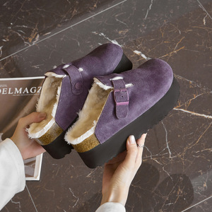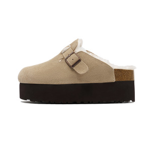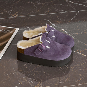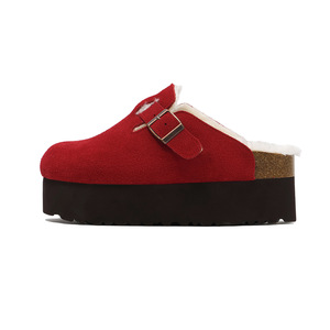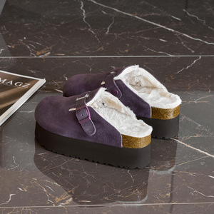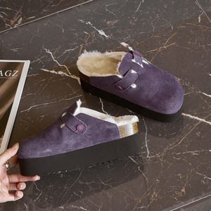 加绒勃肯棉鞋女真皮厚底包头毛拖鞋外穿秋冬加毛加厚保暖雪地毛鞋
