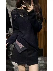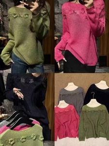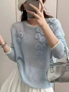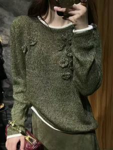 丝羊绒针织衫女圆领2025秋季新款时尚手工勾花洋气减龄宽松毛衣女