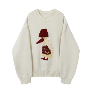 氛围感卡通小鸭子提花圆领针织衫女秋冬新款宽松慵懒时尚百搭毛衣