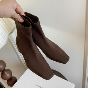 简约方头内增高短靴女2025秋冬新款百搭后拉链弹力瘦瘦女靴时装靴