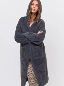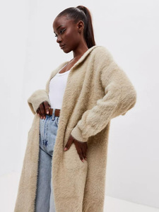 欧美秋冬跨境毛衣长款针织开衫宽松亚马逊连帽衫仿貂毛保暖外套