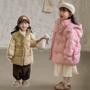 2025新款儿童大衣韩版潮流时尚儿童加厚中长款面包服宝宝连帽夹克
