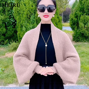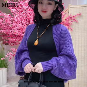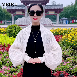 针织披肩女外搭秋冬季保暖时尚百搭洋气宽松长袖旗袍开衫带袖外套