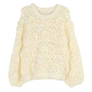 韩版麻花朵毛衣女圆领镂空重工手勾温柔显瘦秋冬新款法式长袖毛衣