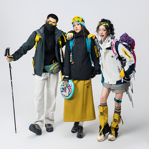 国潮牌防风防水大码三合一情侣款冲锋衣休闲户外运动拼色夹克外套