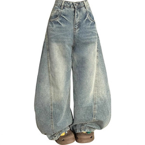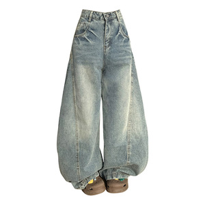 美式复古高腰弯刀牛仔裤女春秋款高街设计感宽松显瘦垂感阔腿裤子