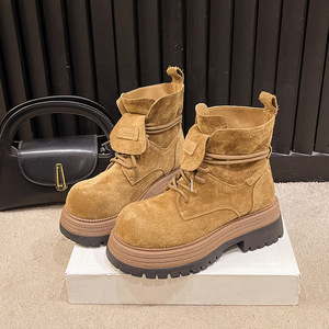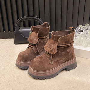 复古磨砂皮马丁靴女厚底2025新款百搭英伦风绑带增高工装靴短靴潮