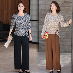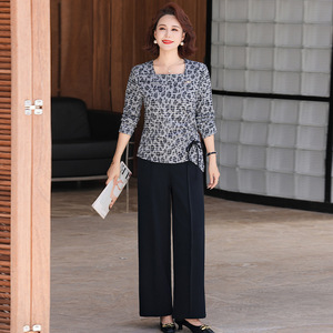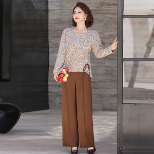 妈妈装秋春季时尚气质两件套中老年收腰长袖修身小衫减龄百塔套装