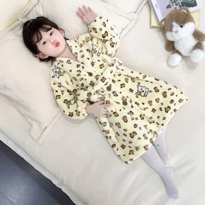 女童秋冬睡袍儿童可爱2025连帽法兰绒家居服浴袍女宝宝珊瑚绒睡衣