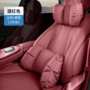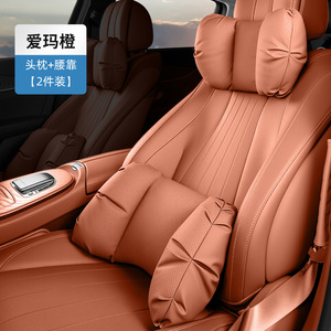 原厂跨境泡泡棉汽车头枕护颈枕纳帕皮车载驾驶高级感腰靠垫枕套装