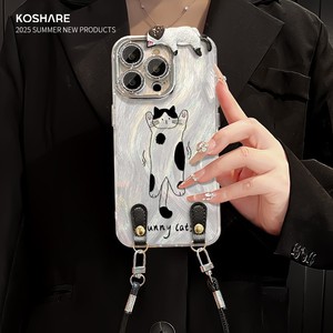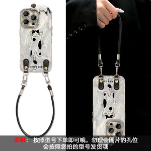 猫咪奶牛公仔适用苹果15promax手机壳iphone17羽纱16个性14带挂绳