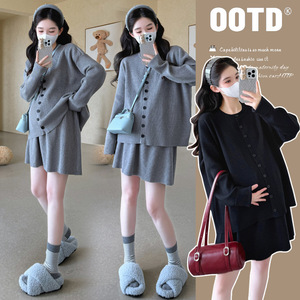 孕妇套装秋冬款慵懒风韩版宽松休闲开衫毛衣半身裙两件套冬季外穿
