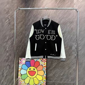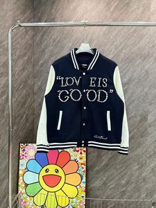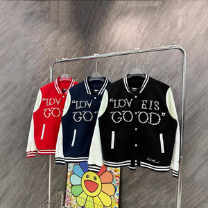高板本潮GOOD串珠字母刺绣三色拼接棒球服经典毛呢男女同款棒球服