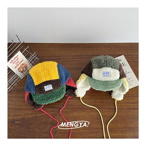 冬季儿童保暖羊羔毛鸭舌帽男女童护耳雷锋帽ins眼睛亲子款棒球帽