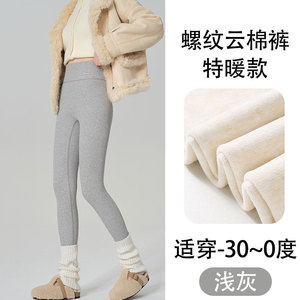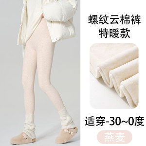 螺纹云棉裤燕麦色加绒加厚特暖冬季打底裤不卷边不掉档显示保暖裤