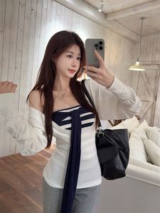 纯欲辣妹挂脖抹胸小上衣女秋季长袖t恤条纹吊带两件套巨好看绝美