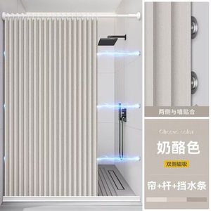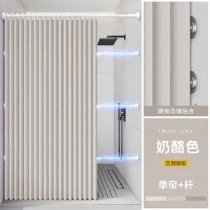 双侧磁吸:奶酪色【单帘+伸缩杆+挡水条】