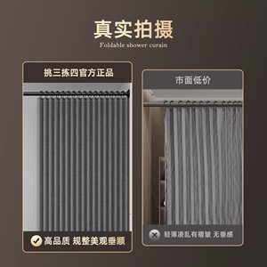 卫生间叠隐形浴帘高档免打孔浴室干湿分离洗澡遮挡帘淋浴跨境外贸