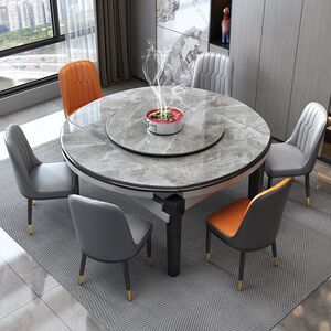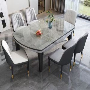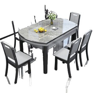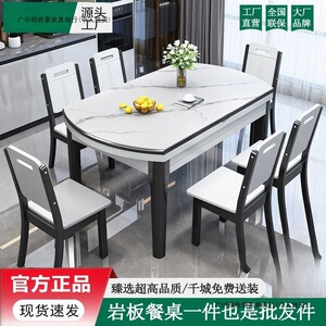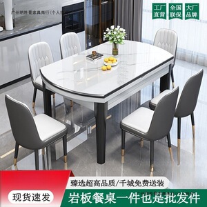 意式亮面岩板餐桌椅组合桌子椅子一套现代简约可伸缩折叠实木圆桌