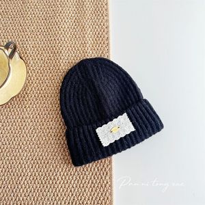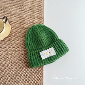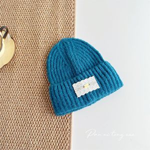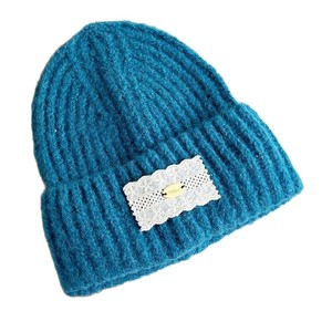亮色儿童帽子蕾丝标针织帽秋冬护耳毛线帽学生防风保暖帽批发