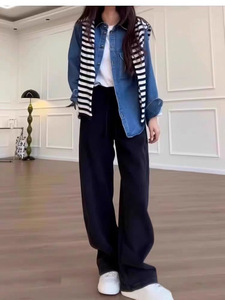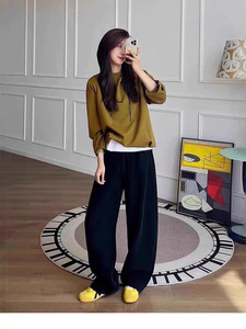 早秋胖妹妹mm梨形身材高腰宽松显瘦弯刀裤女阔腿运动卫裤5927#