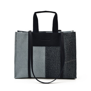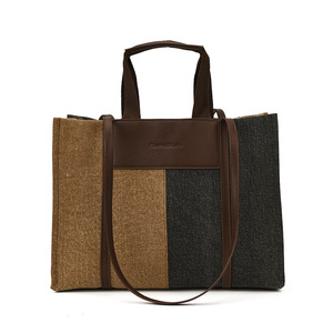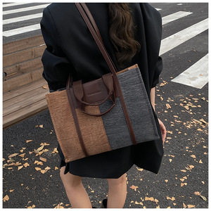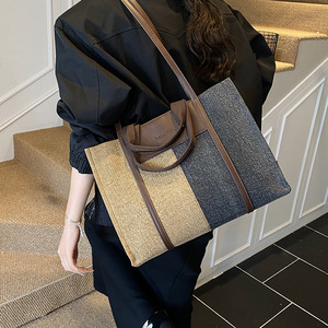 外贸跨境女包韩版拼接撞色单肩包秋2025新款高级感上班通勤托特包