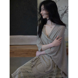 贰羊设计【沫一】慵懒感羊毛披肩开衫女轻薄宽松百搭上衣针织外套