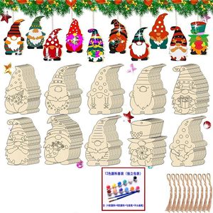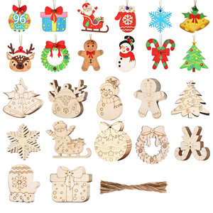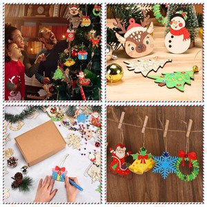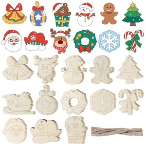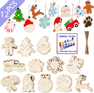 跨境圣诞木质挂件未完成儿童创意手绘涂鸦圣诞元素装饰圣诞树挂饰