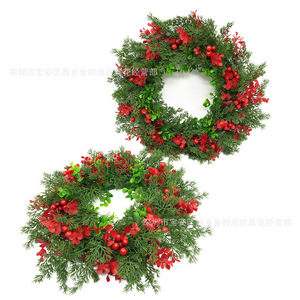 跨境批发美式红果圣诞花环尤加利桉树叶门挂橱窗道具组合花环装饰