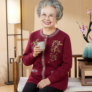 妈妈秋冬针织衫老人太太加厚上衣服奶奶秋装外套老年人女长袖开衫