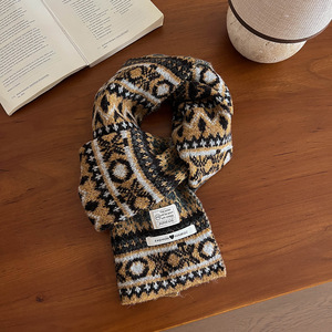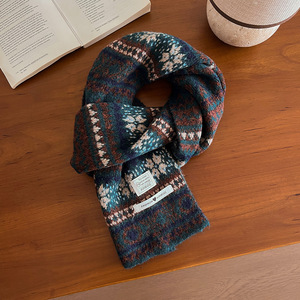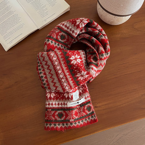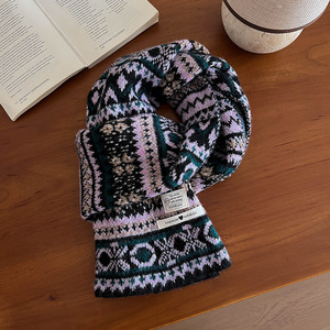 新款高级感休闲百搭加厚保暖围脖冬季费尔岛风复古提花针织围巾女
