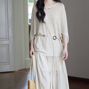 贰羊设计【未央】复古棕色腰绳女设计感小众腰带百搭收腰搭配饰品