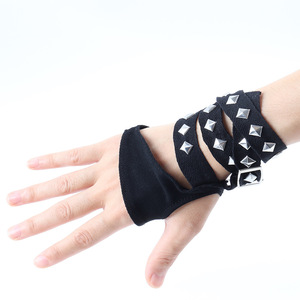 跨境新款三角黑色铆钉朋克手套Y2K配饰辣妹绑带手袖街舞万圣节cos