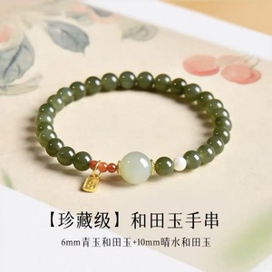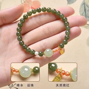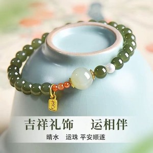 天然和田玉手串女款中式国风南红玛瑙手链高品质青玉送女友礼物