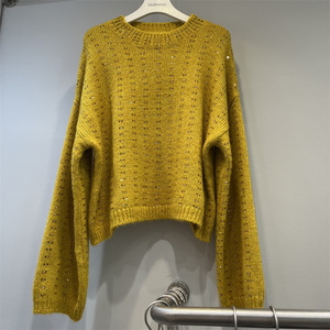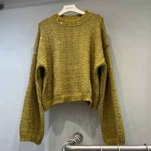欧洲站女装2025秋冬烫钻圆领宽松长袖针织衫时尚减龄显瘦闪闪上衣