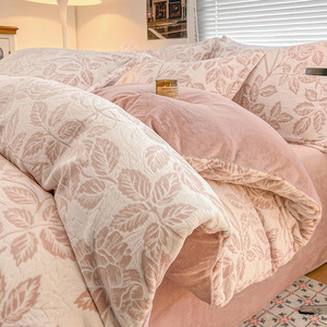 A类高克重雕花牛奶绒四件套加厚冬季珊瑚绒法兰被套床笠床上用品