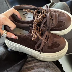 头层牛皮厚底鞋女6cm增高2025新款爆款百搭轻便软底圆头休闲鞋女
