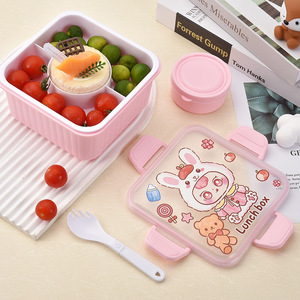 卡通动漫餐盒方形双层分格可爱饭盒幼儿园小学生便携式密封午饭盒