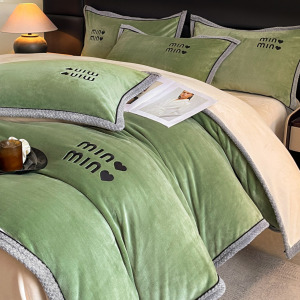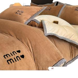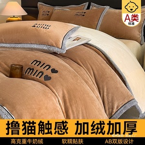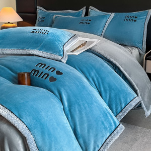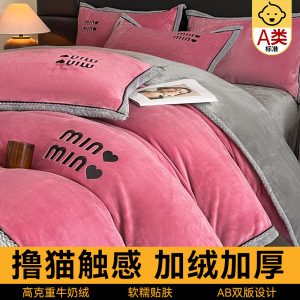 冬季牛奶天鹅绒刺绣床上四件套双面珊瑚宝宝绒被套床单床笠款加绒
