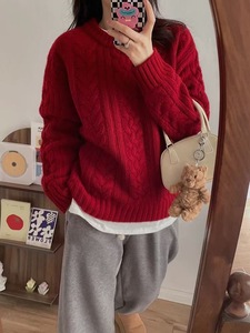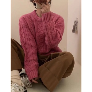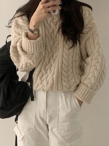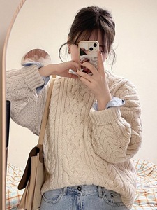韩国Thebarnnet 八奶麻花软糯毛衣女宽松高质感套头上衣针织衫