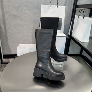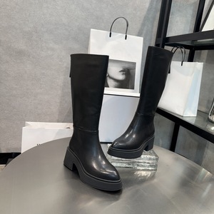 欧货2025秋冬新款粗跟厚底长筒骑士靴女真皮英伦马丁靴尖头高筒靴