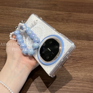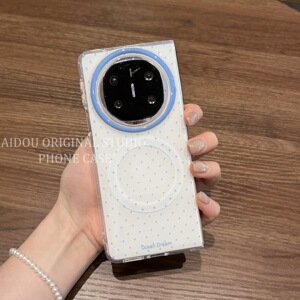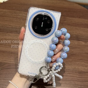 适用华为x6手机壳新款折叠屏磁吸白底蓝色波点matex5典藏版全包防摔保护壳matex3串珠手链时尚小清新手机套女