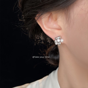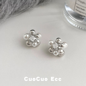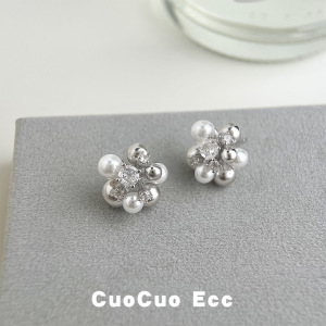 花球清冷感925银针微镶锆石高级感冷淡风个性新款耳饰工厂 耳钉女