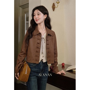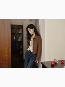 「蝶宿云栖」咖色长袖夹克短款外套女早秋新款小众独特上衣