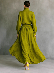 现货跨境外贸女装棉麻秋冬搭配套装长袖高领上衣百搭褶皱口袋长裙