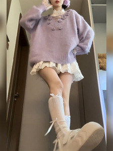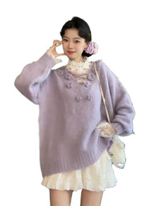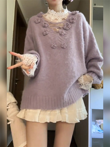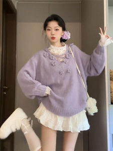 秋冬季女装韩里韩气miu系穿搭小香学院风2025年V领毛衣立体花朵