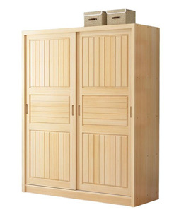 全实木松木推拉门衣柜简约原木成人卧室两门儿童储物衣橱组装