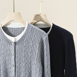 可机洗撞色假两件针织开衫女25秋季新款毛衣复古绞花圆领拼色针织