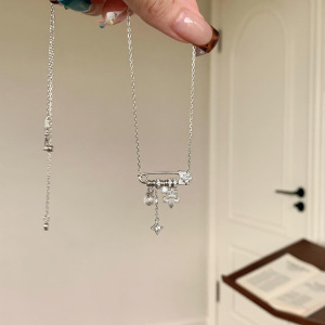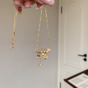 S925纯银鸢尾花别针黄水晶项链女中古风复古轻奢小红书爆款锁骨链